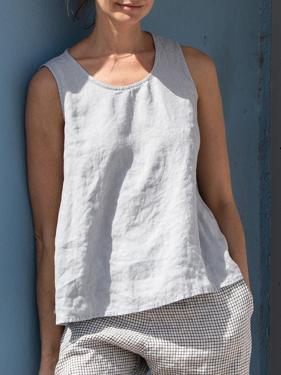 Women Casual White Cross Neck Halter Neck Loose Sleeveless Cotton Linen Tank Top